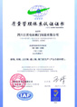 Quality management system certification certificate (in English)